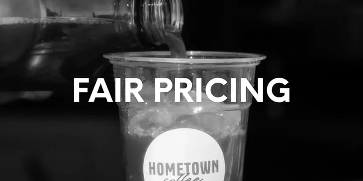 Quality coffee, fair prices. We believe you deserve to know exactly where your hard-earned money goes. We've done the math and we're committed to being transparent about the true costs that go into every cup. Here's the breakdown of a typical Hometown latte: